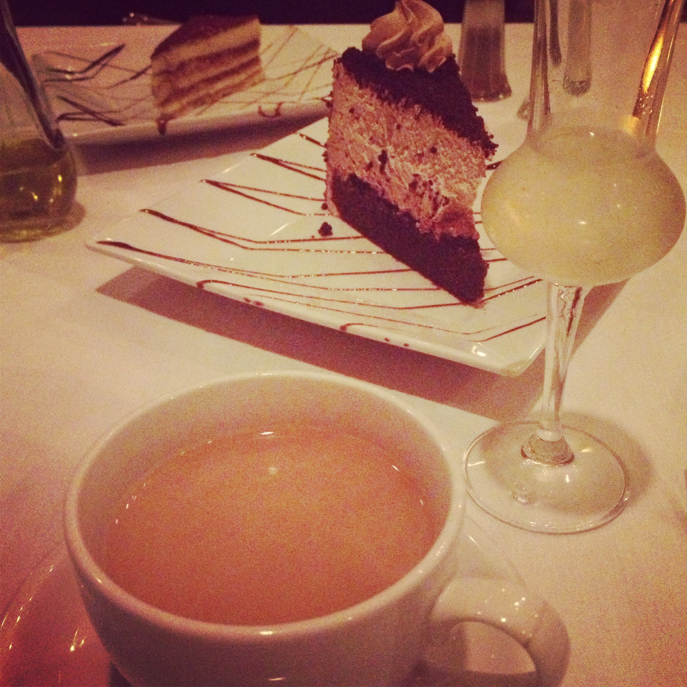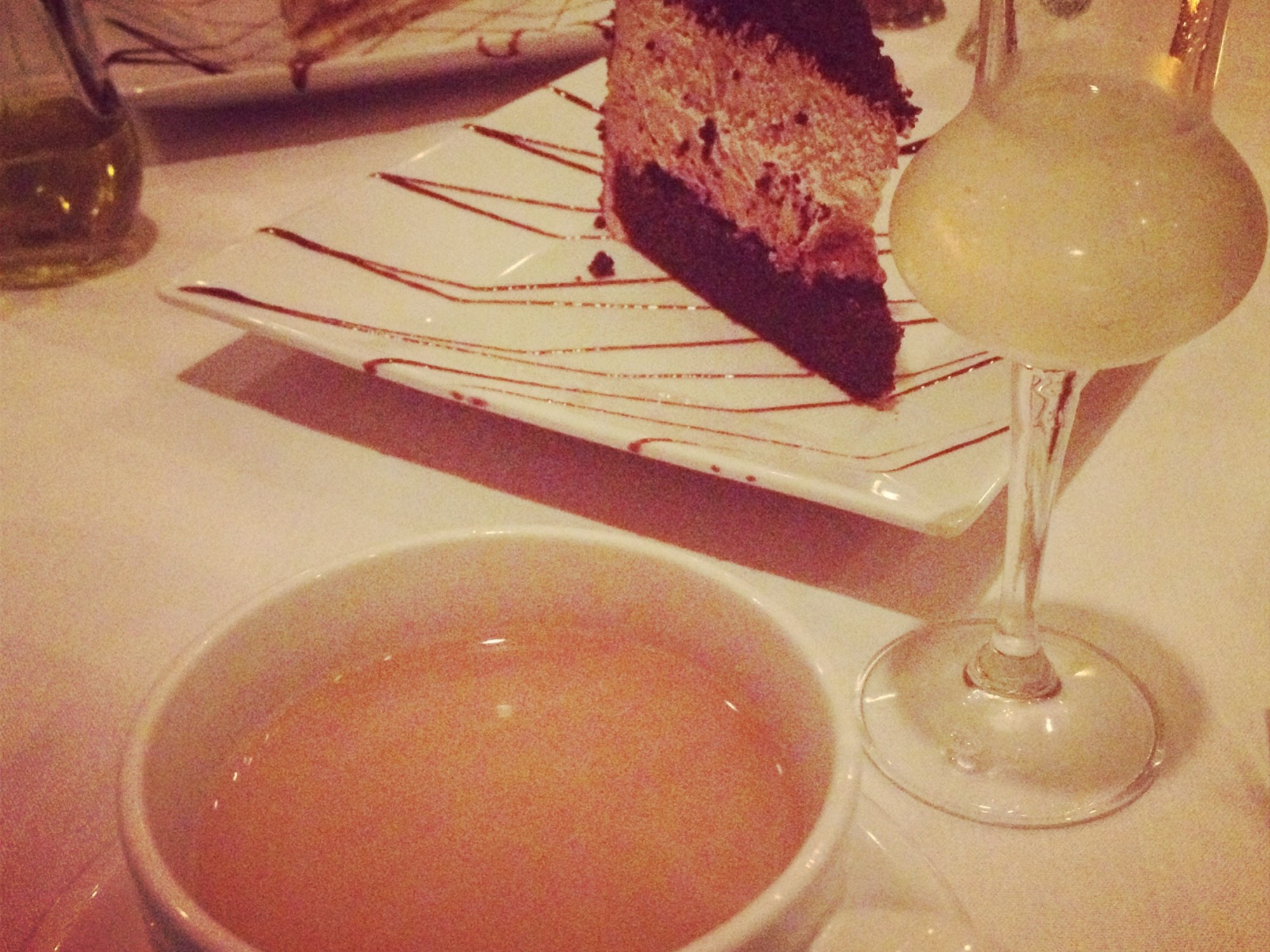 We started with the gnocchi del barone, which was honestly the highlight of the meal. The gnocchi was so airy and light while the delicate gorgonzola cream sauce complimented it so well. I could’ve had two plates of that for my entree and have been a happy, happy girl. We then received complimentary bruschetta from Frank, and some bread with olive oil and spices. My entree, pictured below, was the gamberi e capasante livornese, which was simply delicious. Tiger shrimp, sea scallops, and a small bed of angel hair pasta in a cognac brown sauce. Though it was delicious, next time I am eager to try one of the vitello dishes. We then of course, had dessert. Tiramisu and a chocolate cake that had cappuccino mousse filling, along with coffee. Frank also brought us over a complimentary delicious and refreshing moscato, he took care of us very well.
