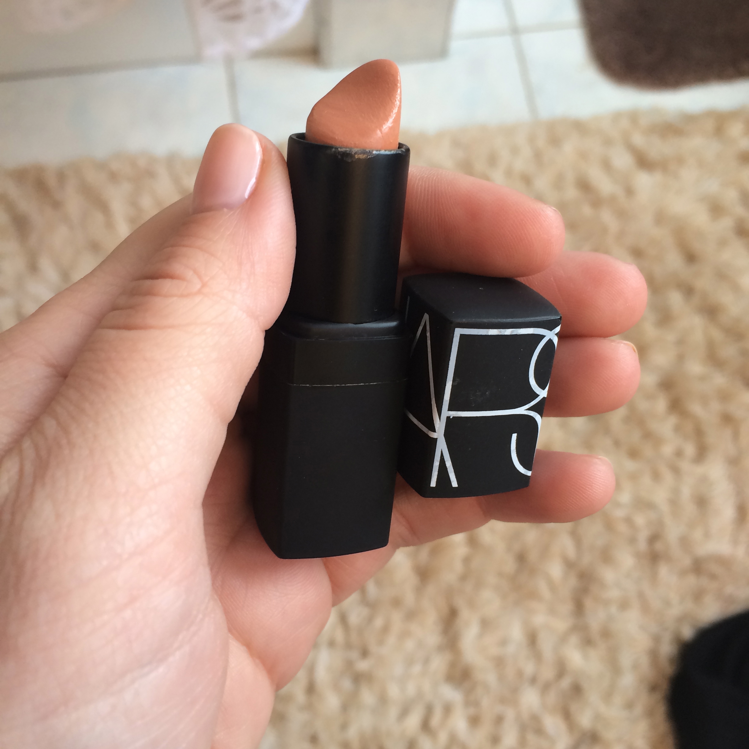 Belle du Jour is a beautiful color by Nars which is probably my favorite lipstick line. It is a semi-matte color which also is moisturizing and stays very long. It is more of a peachy/orange hued nude lipstick and very natural with medium to darker skin tones.