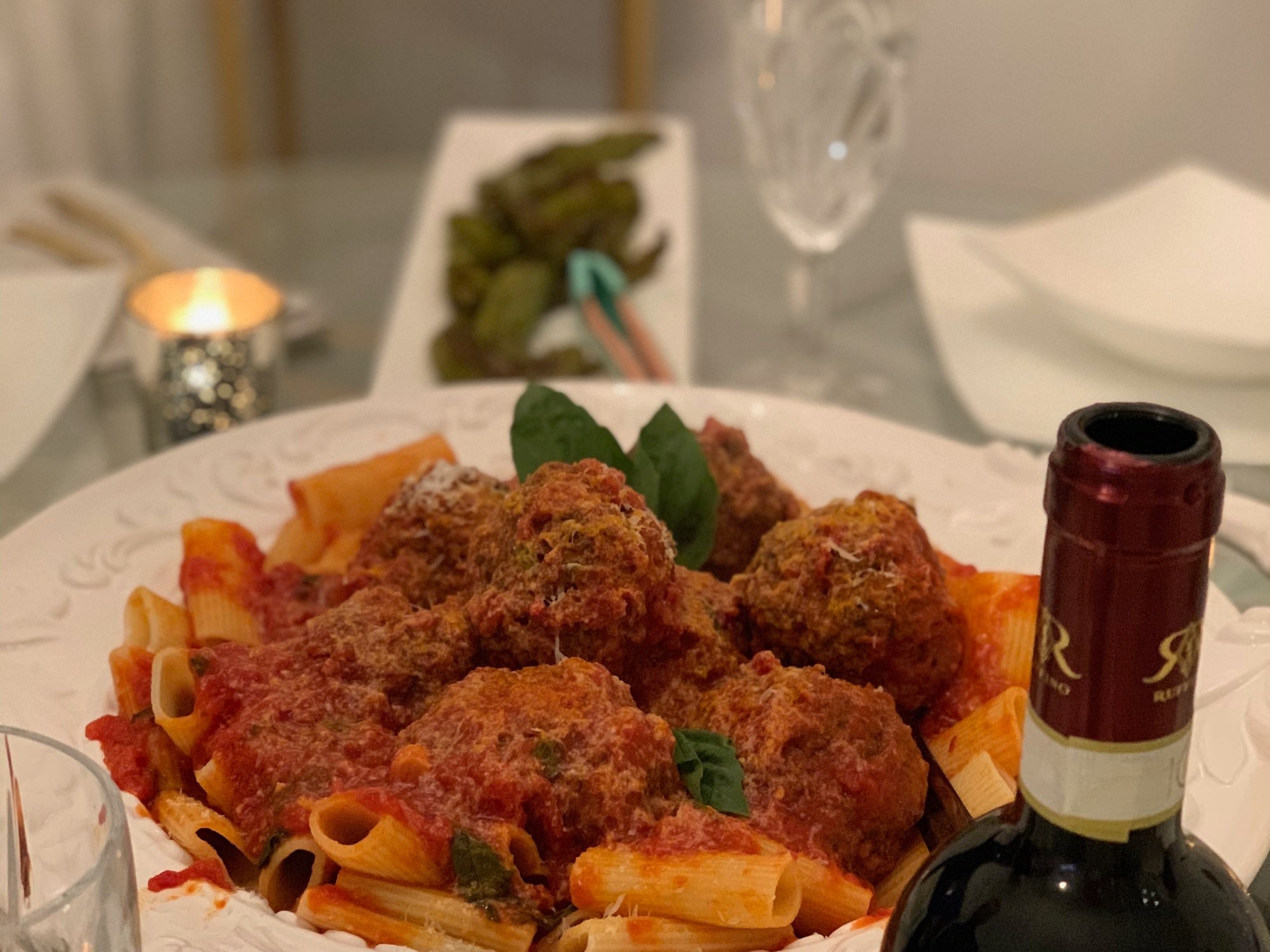 In his restaurant he serves them in the famous Meatball Salad, accompanied by a delicious Italian salad, scoop of fresh ricotta, and roasted Italian long hot pepper (photo below). We rotate how we serve them at home, sometimes as a meatball salad, and other times with some yummy Gentile macaroni. They are incredibly flavorful, light, and tender, with a ton of fresh parsley throughout. So turn on some Sinatra and pour a glass of Chianti–these meatballs are to die for.